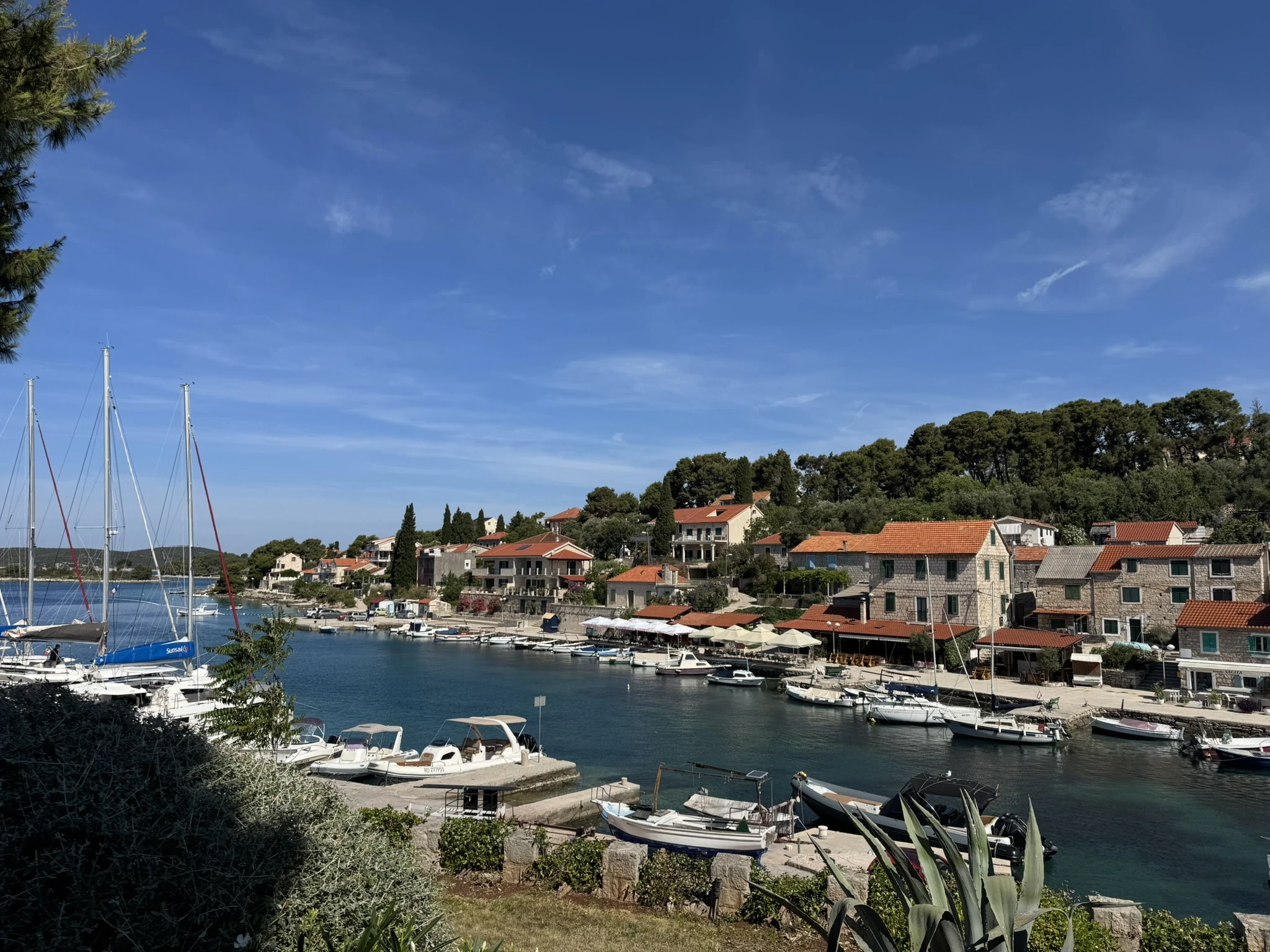 Ein schmaler Pfad führt in etwa 15 Minuten nach Maslinica – ein kleiner Ort mit Cafés, Bars und einem Hauch Hafenflair. Perfekt für ein morgendliches Frühstück oder ein kühles Getränk nach dem Spaziergang.